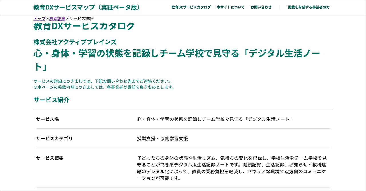 デジタル庁「教育DXサービスマップ*」に、当社の3つのクラウドアプリが掲載されました。